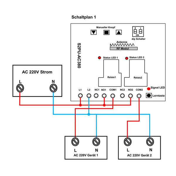 1 x Empfänger (Funkschalter): S2PU-AC380-ANT3