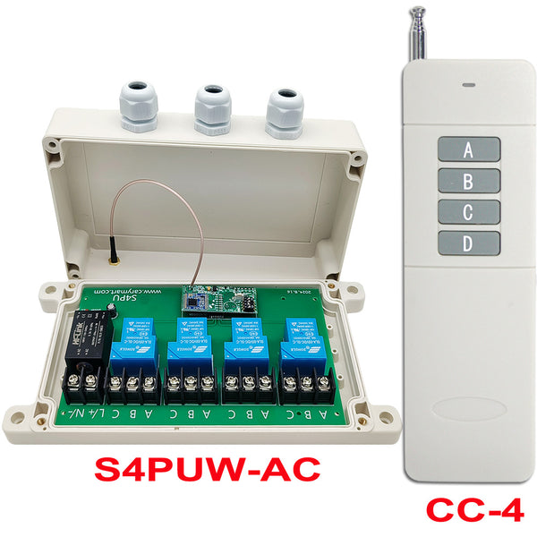 Lange Reichweite 5000 meter Wechselstrom 230V fernbedienung funkschalter set, mit handsender und 4 kanal 30A relais ausgabe funkempfänger.