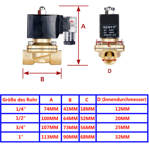 Hinweis: Das DC 12V oder 24V Magnetventil muss mit einem Netzadapter von 2A oder höher funktionieren.